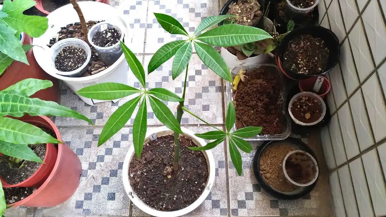 私は使い古しの培養土を使いました。もしもこれから植える場合は、パキラは根腐れしやすいそうなので、水はけの良い土を使うと良いと思います。