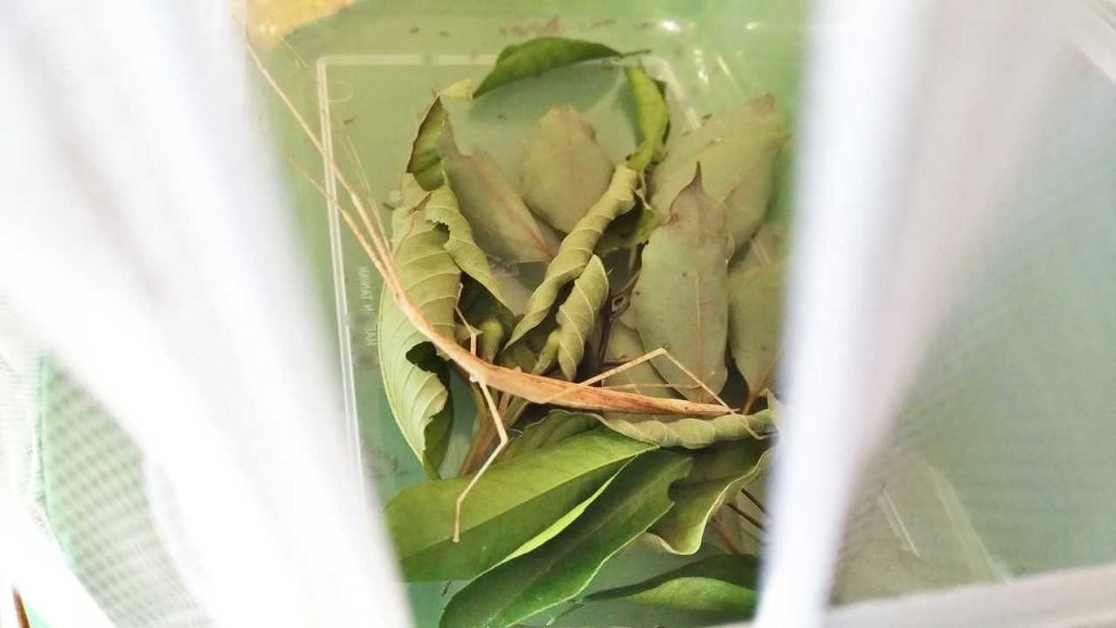 我が家には2種類のナナフシがいますが、おそらくガジュマルを食べたのは泰國小紅翅竹節蟲と呼ばれるタイプのナナフシです。もう一方のナナフシ(タイワントビナナフシ)はガジュマルの葉を食べなかったようです。