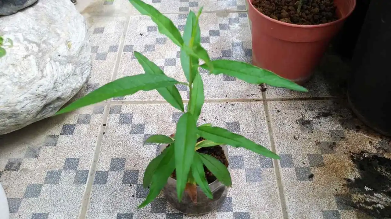 発芽させた頃、ちょうどおいしい桃をいただいたんです。大きくて甘い桃でした。品種は不明ですが、桃であることは間違いありません。